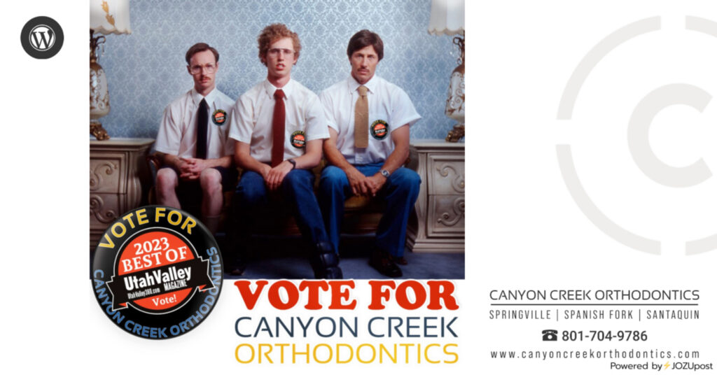 We would love your vote today! It is the last day to vote Canyon Creek Orthodontics as the best orthodontist in Utah Valley. Please visit our website at canyoncreekortho.com and click on the Blue VOTE NOW button to submit your vote.
